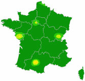 En France métropolitaine, la semaine dernière (2022s36), le taux d'incidence des cas de varicelle vus en consultation de médecine générale a été estimé à 1 cas pour 100 000 habitants (IC 95% [0 ; 3]). Ce taux est stable par rapport à la semaine 2022s35 (données consolidées : 2 [0 ; 4]) et est à un faible niveau d'activité par rapport à ceux observés habituellement en cette période.Au niveau régional, les taux d'incidence les plus élevés ont été observés en : Occitanie (6 [0 ; 28]), Pays de la Loire (4 [0 ; 15]) et Hauts-de-France (4 [0 ; 13]).